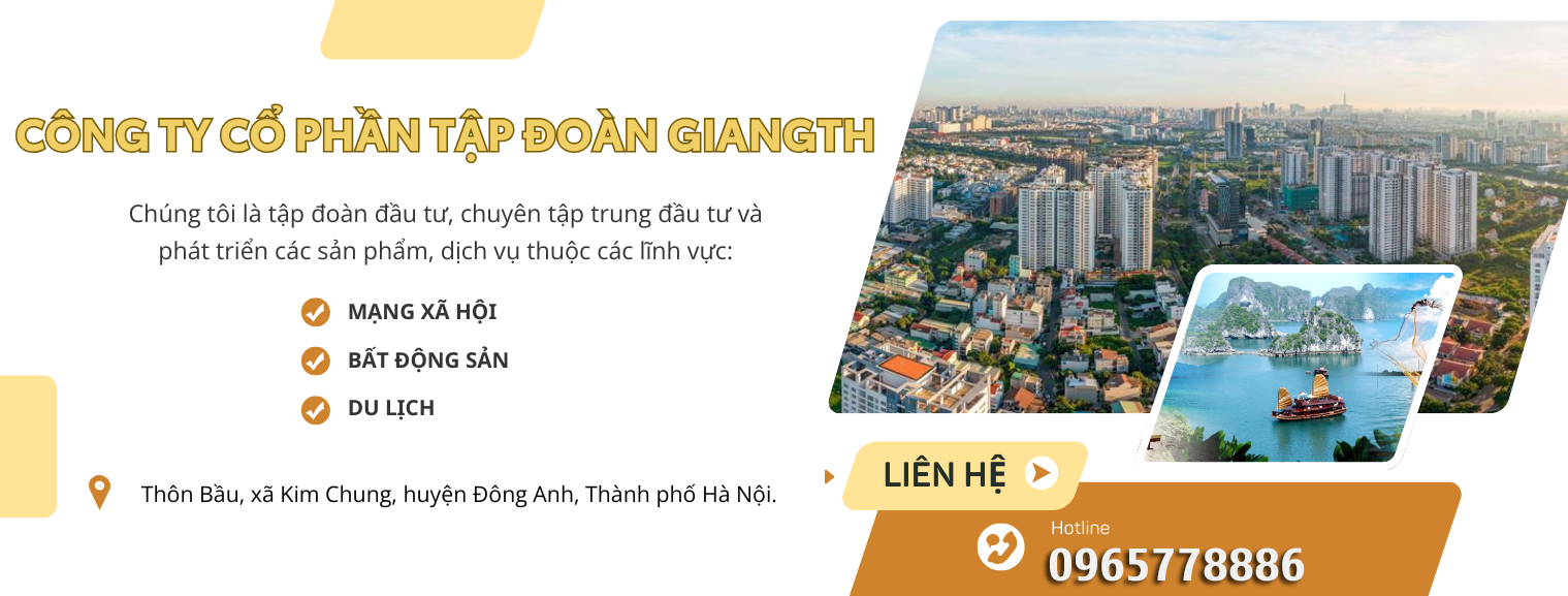 CÔNG TY CỔ PHẦN TẬP ĐOÀN GIANGTH là tập đoàn đầu tư, chuyên tập trung đầu tư và phát triển các sản phẩm, dịch vụ thuộc các lĩnh vực: Mạng xã hội, bất động sản, du lịch…